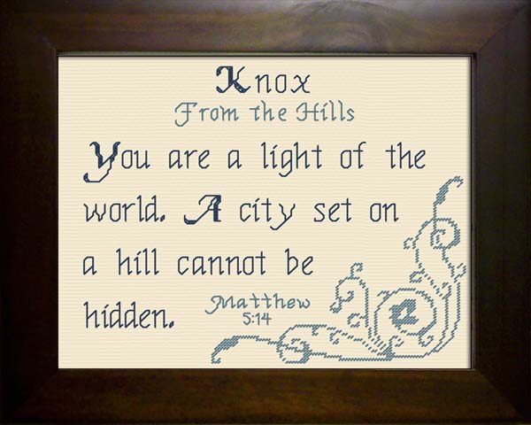 Purchase this Chart for $8.00 Order Knox as a Complete Kit for $17.00 with 14 ct Aida or $22.00 with 28 ct Linen