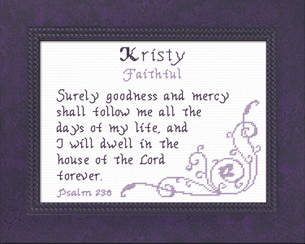 Purchase this Chart for $8.00 or Order Kristy as a Complete Kit for $17.00 with 14 ct Aida or $22.00 with 28 ct Linen