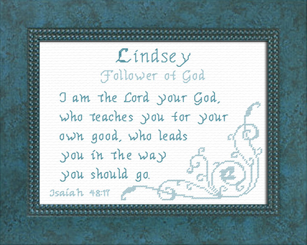 Purchase this Chart for $8.00 or Order Lindsey as a Complete Kit for $17.00 with 14 ct Aida or $22.00 with 28 ct Linen