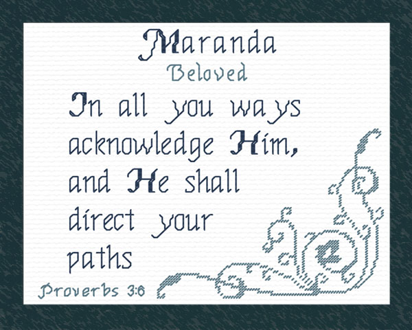 Purchase this Chart for $8.00 or Order Maranda as a Complete Kit for $17.00 with 14 ct Aida or $22.00 with 28 ct Linen