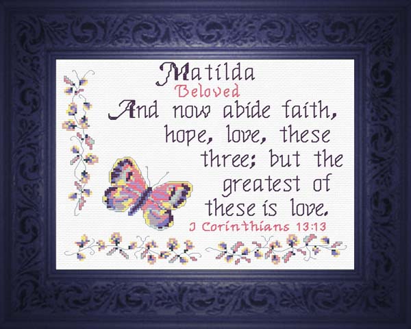 Order Matilda as a Complete Kit for $17.00 with 14 ct Aida or $22.00 with 28 ct Linen