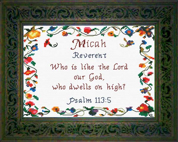 Order Micah as a Complete Kit for $17.00 with 14 ct Aida or $22.00 with 28 ct Linen