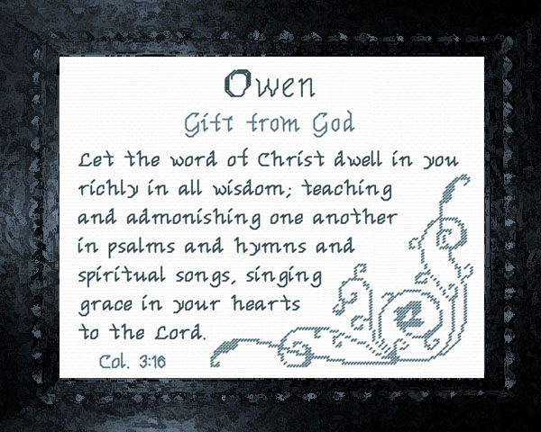 Purchase this Chart for $8.00 Order Owen 2 as a Complete Kit for $17.00 with 14 ct Aida or $22.00 with 28 ct Linen