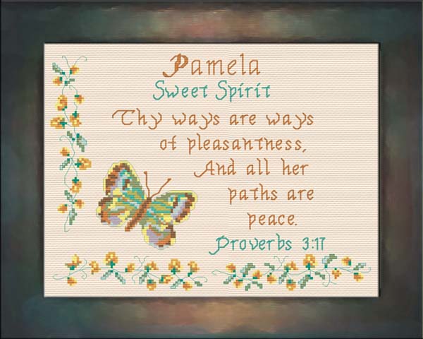 Order Pamela as a Complete Kit for $17.00 with 14 ct Aida or $22.00 with 28 ct Linen