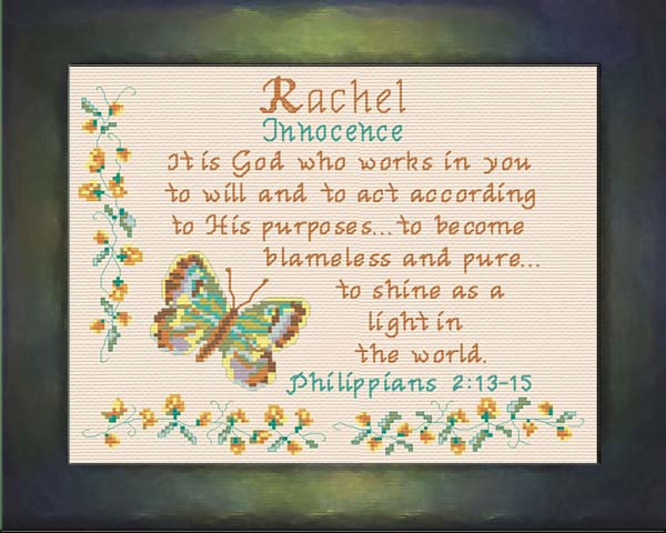 Order Rachel as a Complete Kit for $17.00 with 14 ct Aida or $22.00 with 28 ct Linen