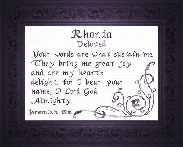 Purchase this Chart for $8.00 or Order Rhonda as a Complete Kit for $17.00 with 14 ct Aida or $22.00 with 28 ct Linen