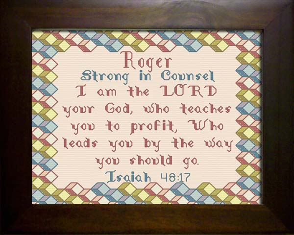 Purchase this Chart for $8.00 Order Roger as a Complete Kit for $17.00 with 14 ct Aida or $22.00 with 28 ct Linen