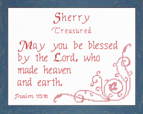 Purchase this Chart for $8.00 or Order Sherry as a Complete Kit for $17.00 with 14 ct Aida or $22.00 with 28 ct Linen