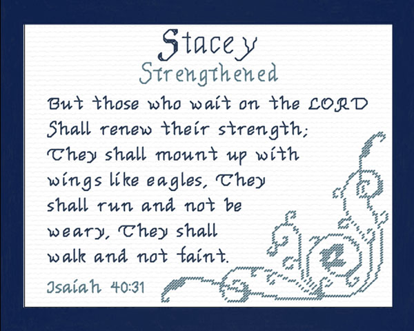 Purchase this Chart for $8.00 or Order Stacey as a Complete Kit for $17.00 with 14 ct Aida or $22.00 with 28 ct Linen