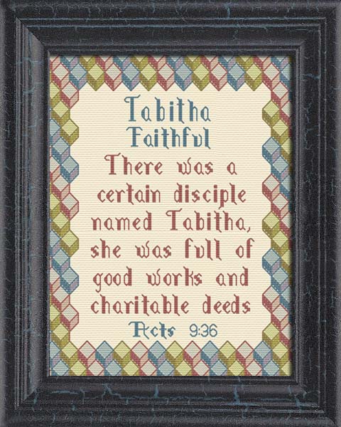 Order Tabitha as a Complete Kit for $17.00 with 14 ct Aida or $22.00 with 28 ct Linen